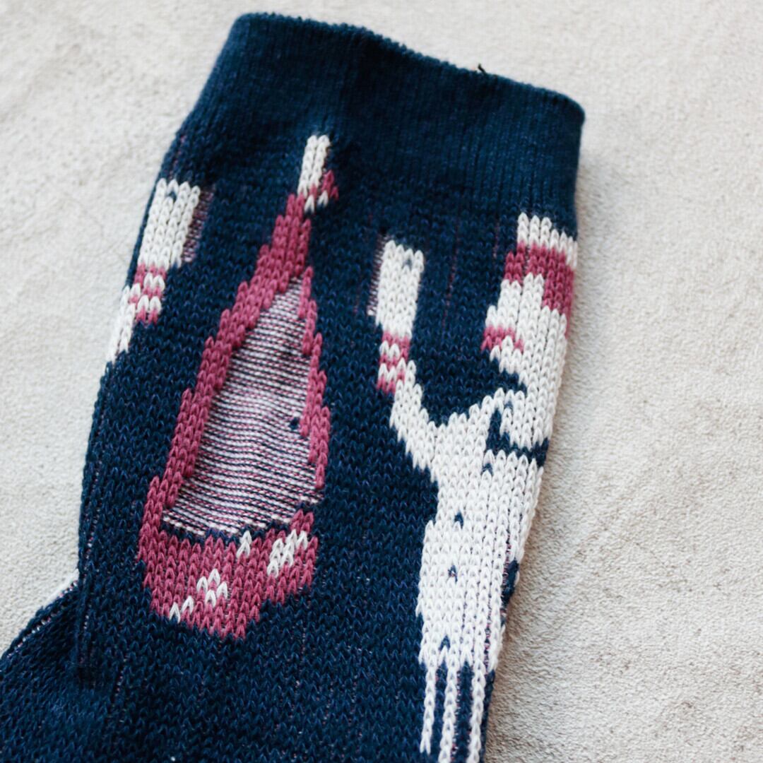 ・ブッチャー→お肉屋さん ・バーバー→理容師さん ・ダブルジャガード編みなので、裏面に糸のわたりが無くすっきり快適な履き心地です