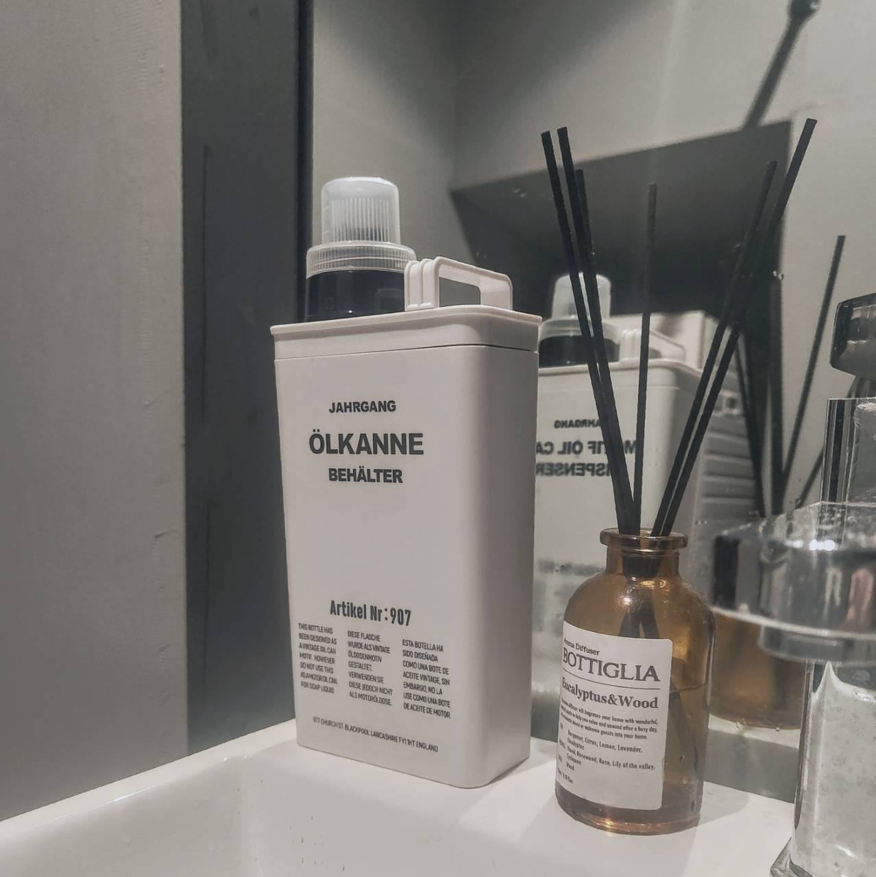 ビンテージのモーターオイル缶をモチーフにしたランドリーリキッド専用ボトル。