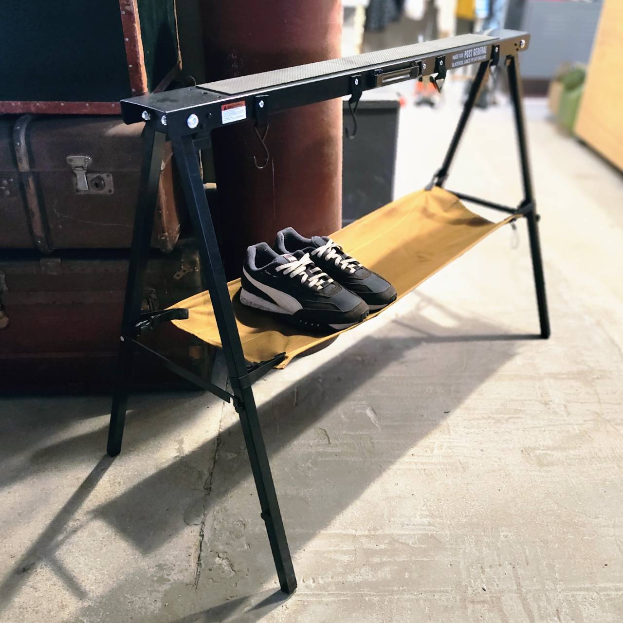 アウトドアシーンでのハンガーラックとして使える新感覚ギア「ソーホース」。