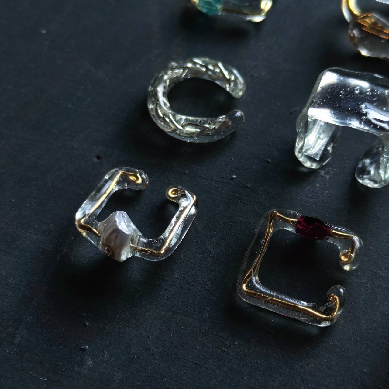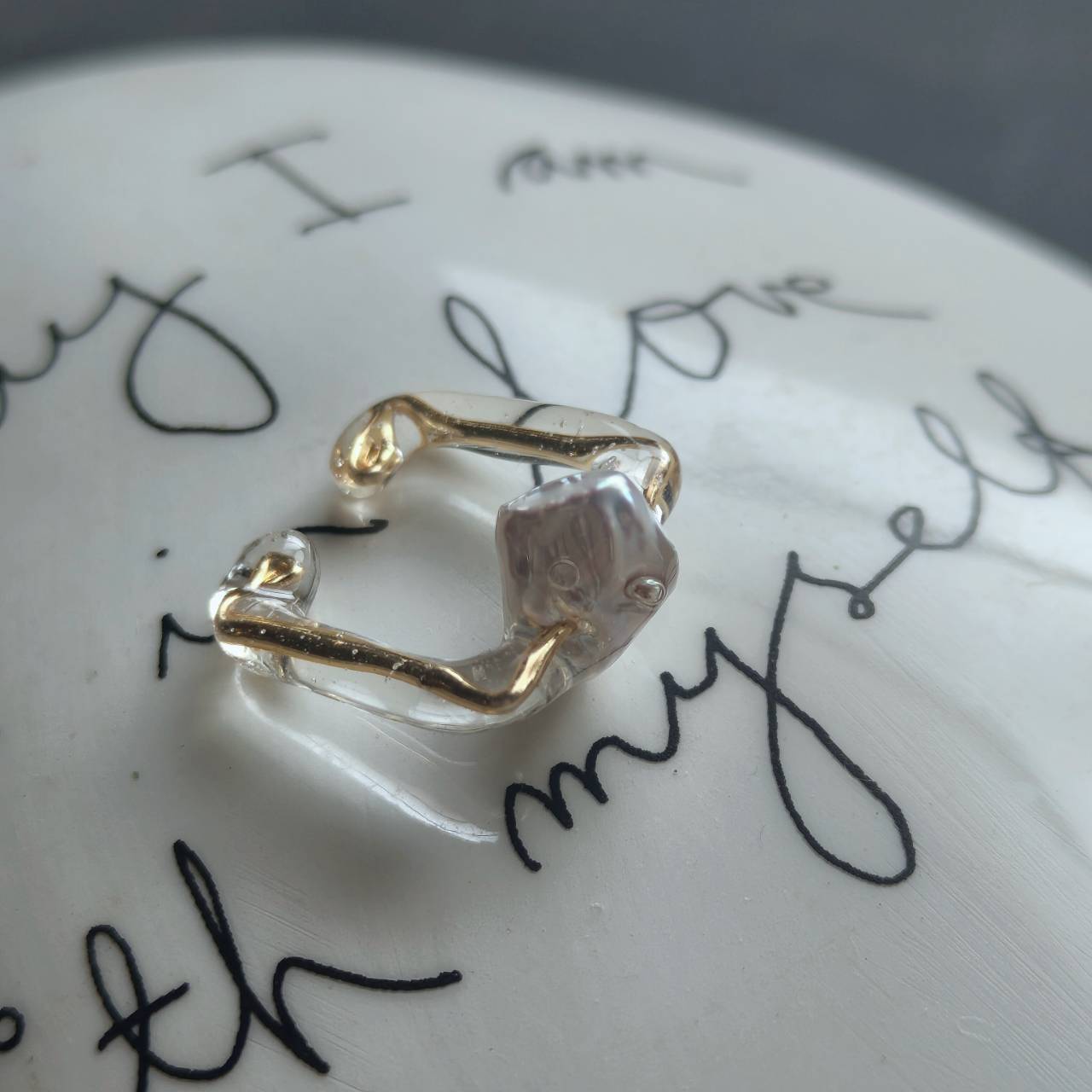 - square ear cuff - (gold ×バロックパール 中心)Mサイズのみ イヤーカフ